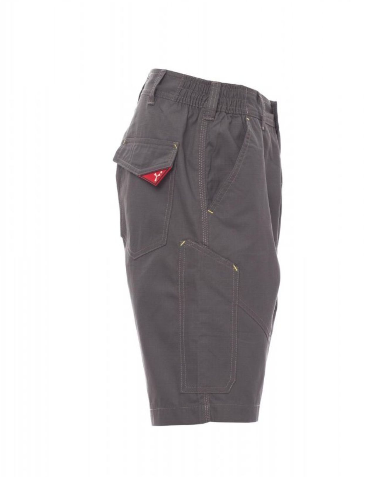 Bermuda uomo, elastici laterali e passanti in vita, chiusura con zip e bottone in plastica, due tasche anteriori a taglio classico, una tasca laterale LOCK SYSTEM, un porta metro, due tasche posteriori una aperta e una con patta e velcro, inserti ed impuntare a contrasto, bande reflex su tasca posteriore, cuciture triple.